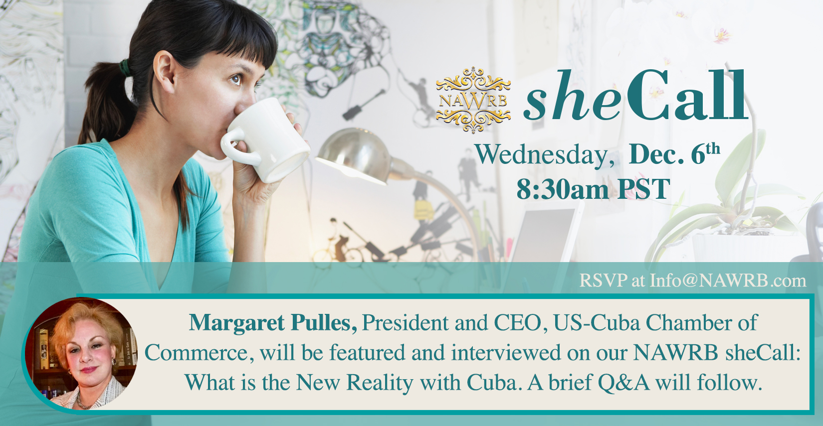 Margaret Pulles, President and CEO, US-Cuba Chamber of Commerce, will be featured and interviewed on our NAWRB sheCall: What is the New Reality with Cuba? Call in to find out the latest and participate in a brief Q&A session following the call.